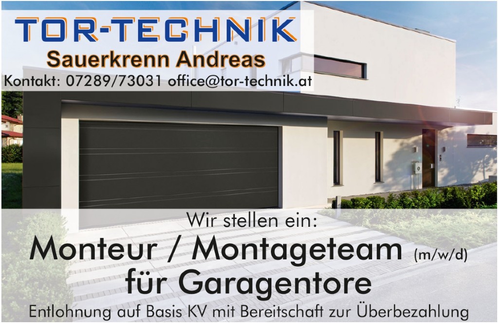 Bei uns erhalten Sie sämtliche Leistungen aus einer Hand. Von der Bestellung über die Lieferung und Montage bis hin zum regelmäßigen Service und der Reparatur ist Tor-Technik Sauerkrenn aus Oberösterreich für Sie da.